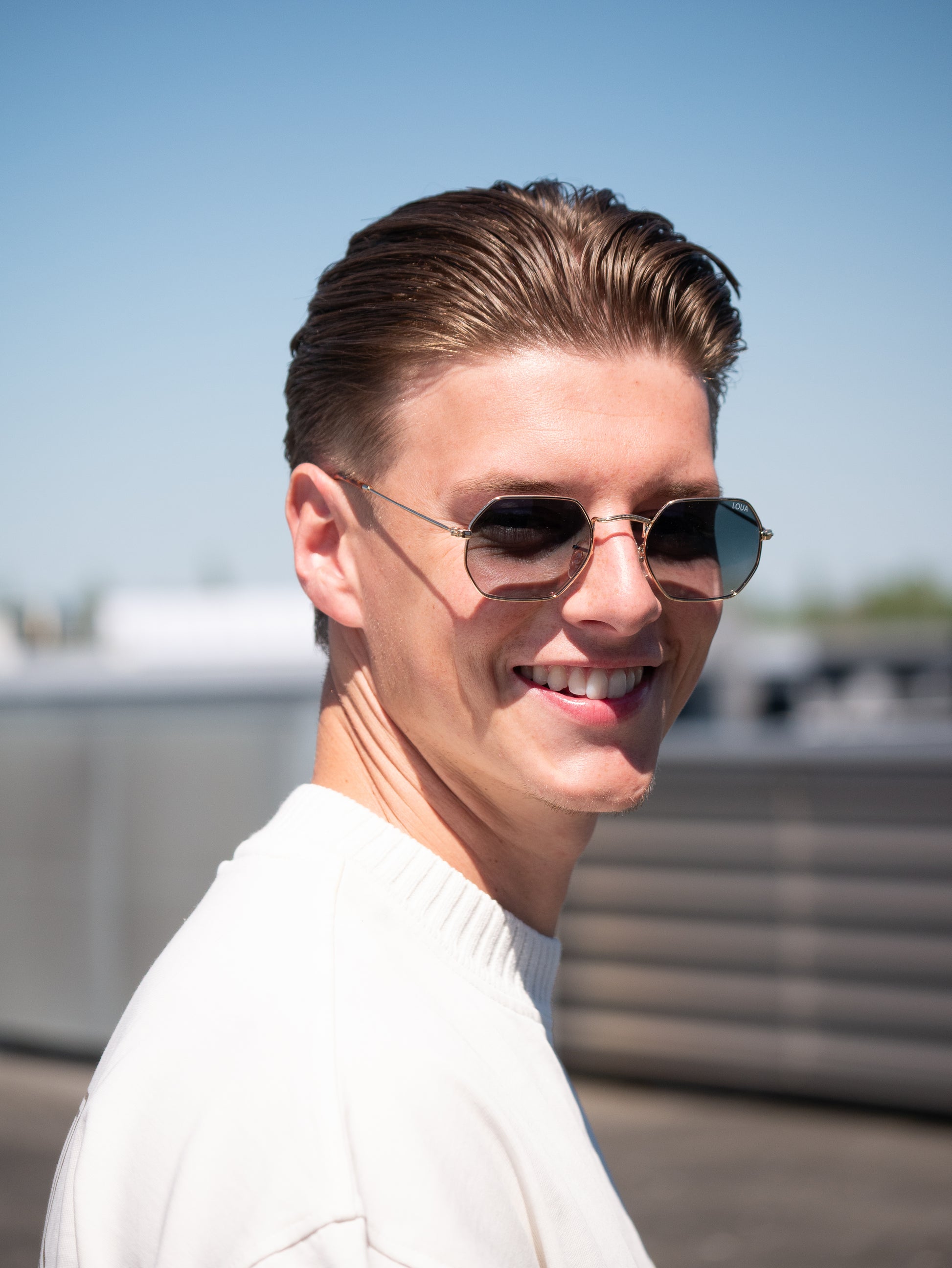 The ASH Sunglasses bring together sharp design and bold elegance in a compact, powerful form. With a sleek gold-colored stainless steel frame, these sunglasses offer a standout look that’s both modern and refined. The black PC lenses provide strong contrast and full UV protection, making them as functional as they are stylish.