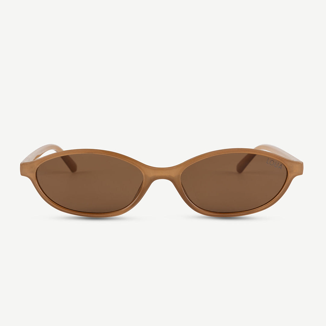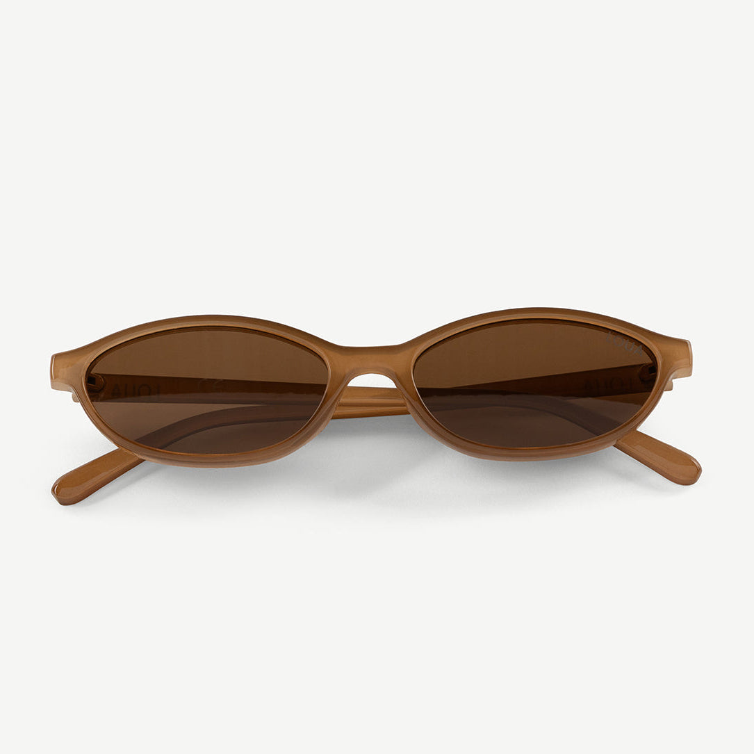 Simple and stylish. This light brown version of our retro-inspired sunglasses features a smooth PC frame with warm tones that give the design an easy, everyday look. The TAC lenses come in a matching brown tint, offering lightweight durability and comfortable vision in the sun. A soft, rounded shape that’s perfect for casual outfits and effortless styling.