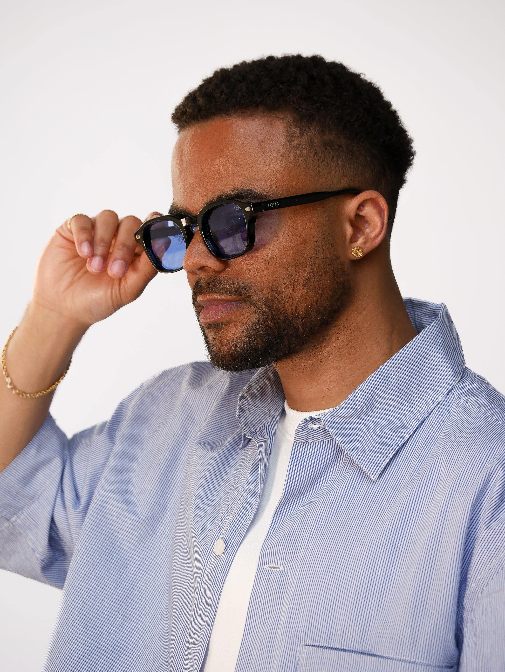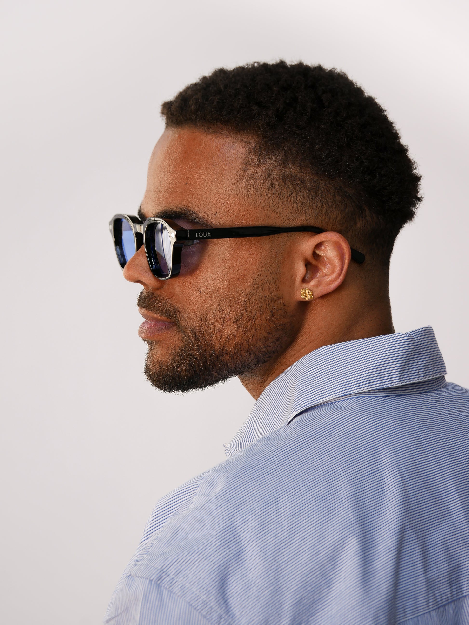 Elevate your style with these Luxe Premium Thiago Sunglasses. Crafted with a durable black PC (Polycarbonate) frame for a lightweight, comfortable fit, and elegant iron temple arms for added strength and luxury. The light blue PC lenses provide excellent clarity and UV protection, adding a cool, modern touch to your look.